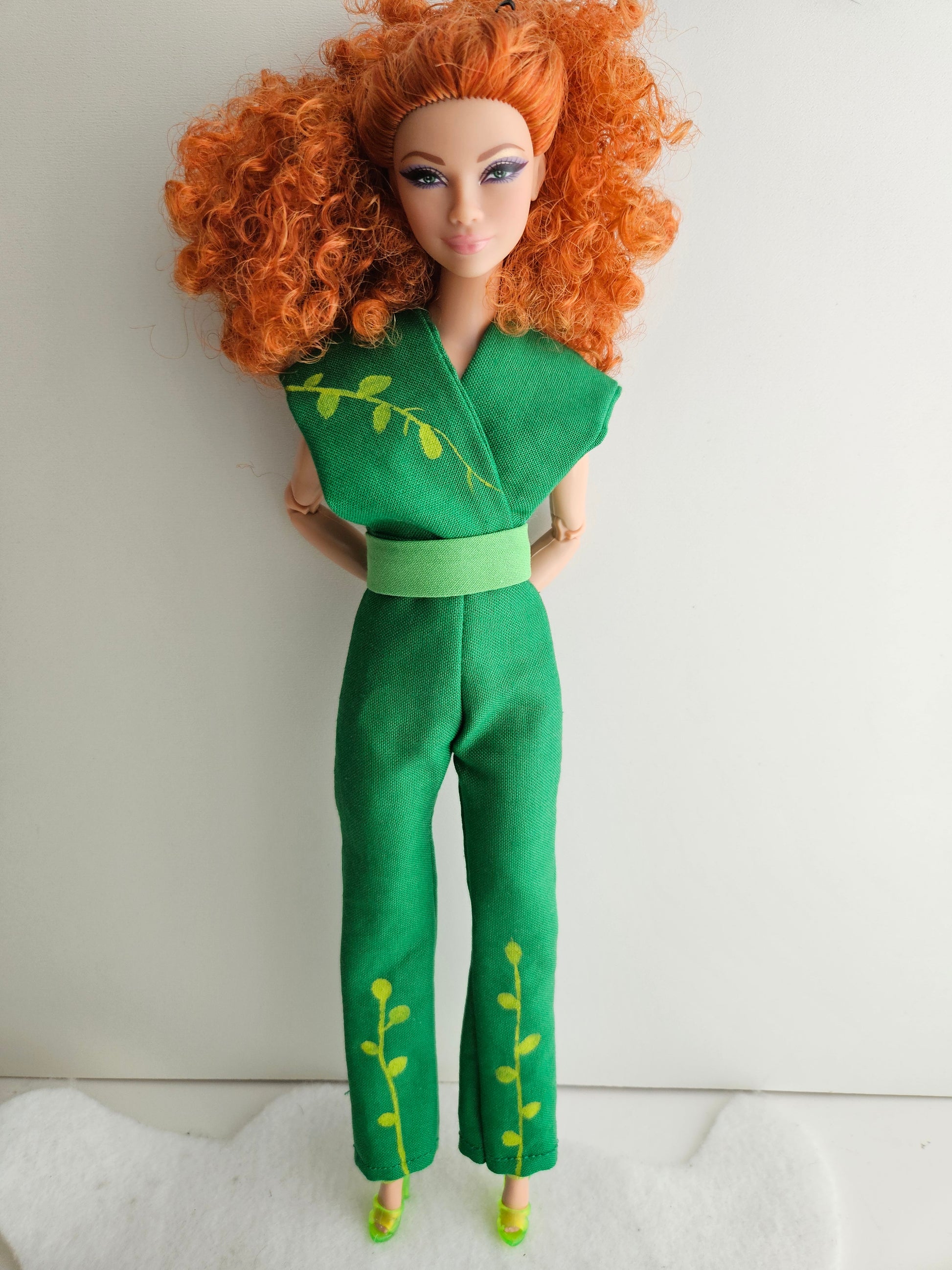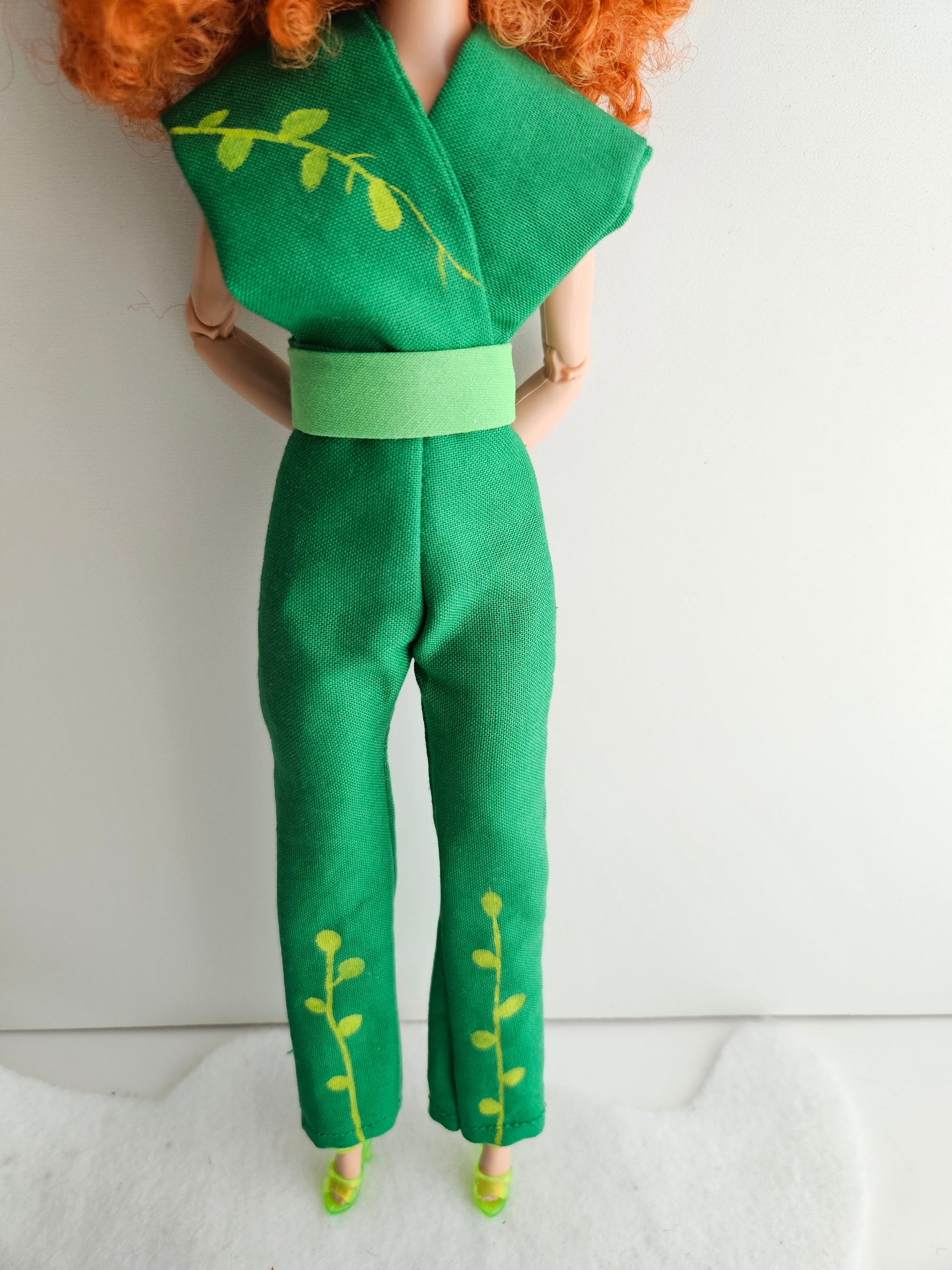 Green Jumpsuit with hand painted details