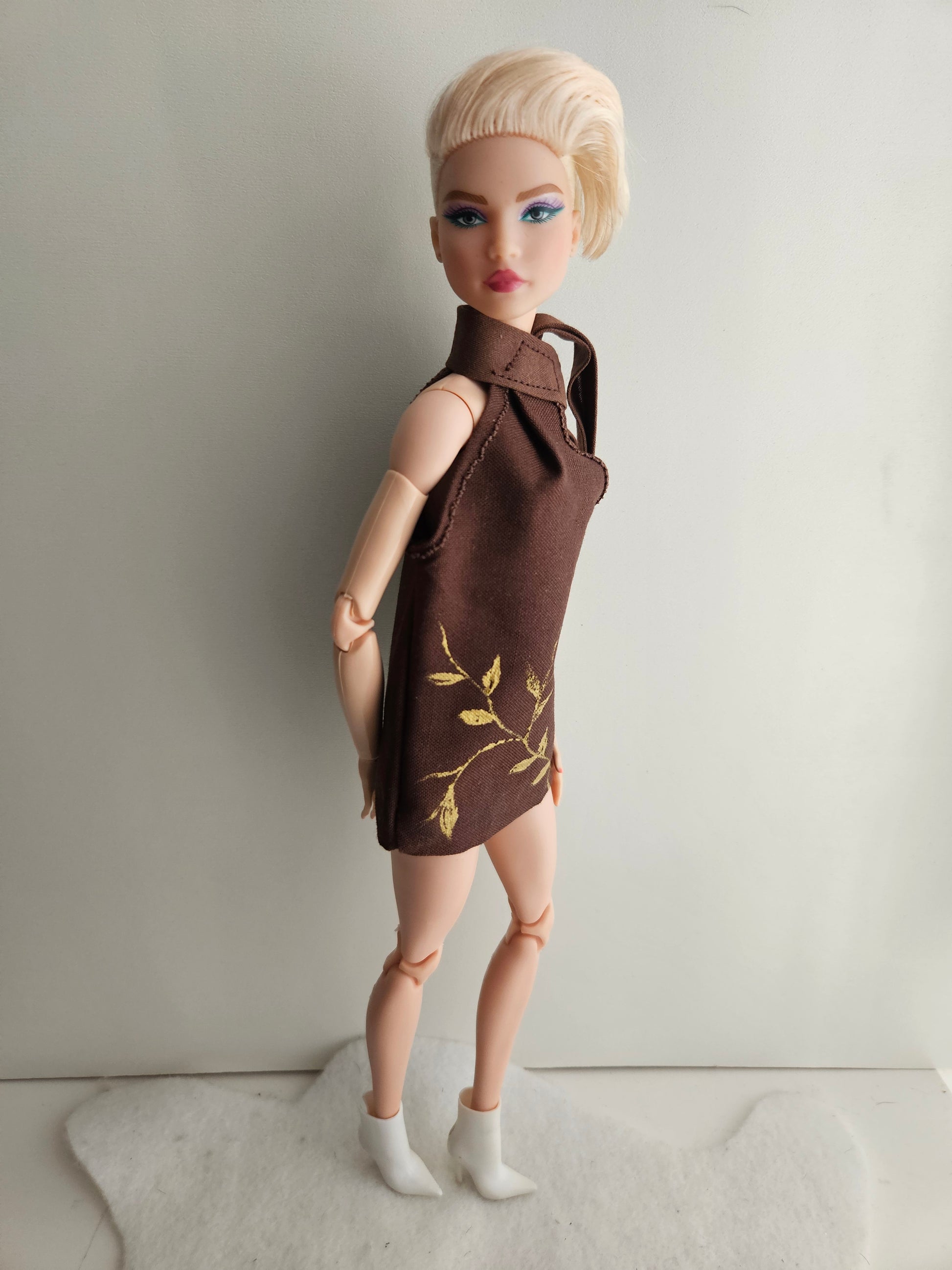 Brown Mini Dress with hand painted details